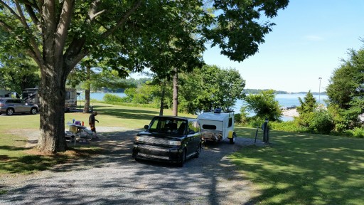 Popular with the locals for the nearby swimming beach, reservations recommended. Most sites are waterview but water is not accessible from the campground. Very little shade at the sites. No soap in the bathrooms, bring hand sanitizer. Campground bathrooms are also used by beach goers. One shower for each gender per ring. Firewood and ice for sale from camp host. Some water traffic noise early in the morning, but not too bad.