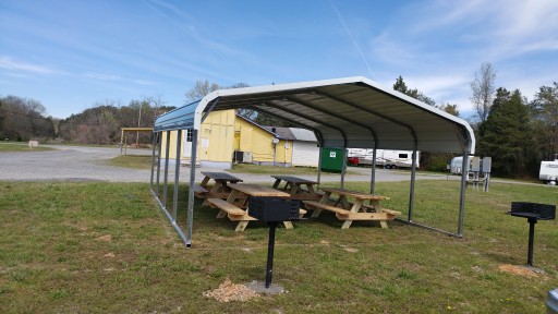 All of our sites are full hookups with 30/50 amp. We have cable on most sites. There is a picnic shelter on the property. Campfires are allowed but there are no fire rings on the sites. Campers can furnish their own. We have shower houses available and a restaurant on site.