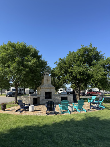 Very nice park. Sites were gravel and very level, great grass, 50/30 amp service. No cable, but got plenty of local channels via antenna. Large park, but it didn’t feel as if we were on top of each other. Really nice dog park. Had a little pond. No store onsite. Nice bathrooms. Very nice pool along with a outdoor area with a fireplace. Overall we really liked this park.