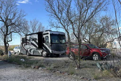 I get tired of people reviewing a park for what it is not instead of what it is! This park is gravel and level, nice views of Davis mountains at sunset. Easy access off highway, no reservations needed, owner friendly, some nicely landscaped lots and enough spaces you can be by yourself.