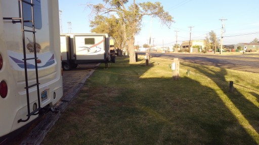 It is small and the 30amp electric panels are old. Water seems to be on even numbered spaces. Coming from the north, you will see the park on your left, go to the south end and you will see the entrance to the park. Large enough area to unhook. The dump is in the open parking area.