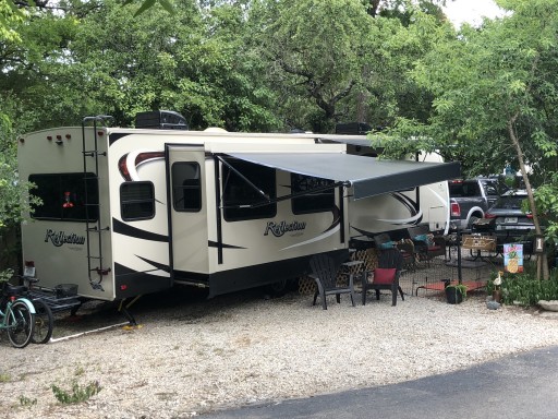 I’m a travel nurse and have enjoyed 6 months at the park. Sue and Nick, the owners are amazing hosts and have became friends. First let me say the park is a peaceful place to relax on my days off. There are several full time residents as well as transient campers, but it is never noisy. The park has all the amenities you could need. There are bathhouses that are clean and a laundry facility (2 washer, 2 dryer $1.50 and $1.00 respectively). also there is a pool and hot tub. The sites are wide and level. We came in late at night and Sue was happy to accommodate us. The entrance hill is rather steep but we had no issue with our 38’ rig. There is also a back way to exit if needed. The park is very shaded which is wonderful in the TX heat and the plants are beautiful. I love watching the hummingbirds and swallows. There are also resident cats who mind their own business and do not bother anything. (I’m not really a cat person) The cabins for rent seem cute! I would stay here again!!!