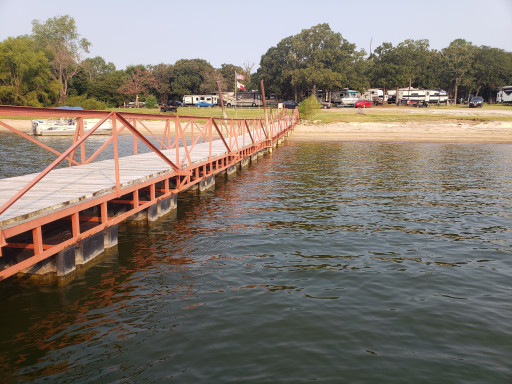 These sites are not full time. There are two Elks 218 Lodges, Downtown (no camping) and Lakeside Elks 218 Lodge. 20 sites with 30 amps and water. No dump station, but you can dump next door at the Lighthouse for $5. The Campsites are on the water. There is a boat ramp, boat dock and sand beach on Lake Texoma. There is a Lodge/Bar the services food every Friday and most Thursdays. Great place for kids. YOU MUST BE A ELKS MEMBER