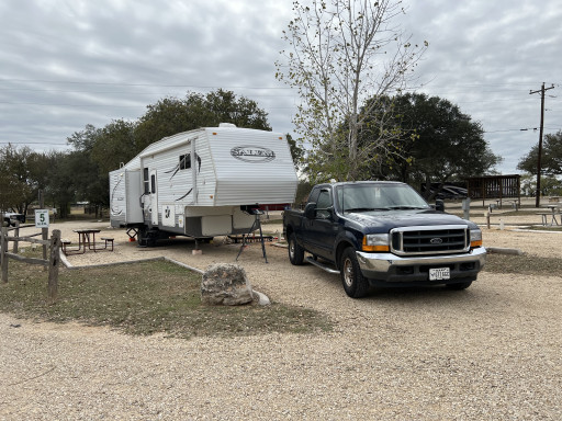 Quiet clean park with great amenities. Staff is very friendly and helpful. Shower house and laundry are well kept. Sites are large and level with adequate utilities for any size unit. Each site has a concrete pad with a picnic table. Lots of shade trees. Location is great! Next door to food truck park with live music on the weekends and serving breakfast, lunch and dinner most days. H-E-B grocery 1 mile from park. Ice machine on property.