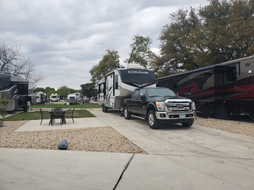 Very easy to get to, nice big entrance, easy to maneuver, nice size sites, friendly staff, clean, nice dog park, nice pool. Price is reasonable for the amenities included. Close location to explore Texas Hill Country. We will definitely stop again when in the area. We have a Class A towing a 2500 GMC.