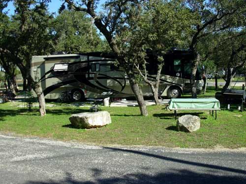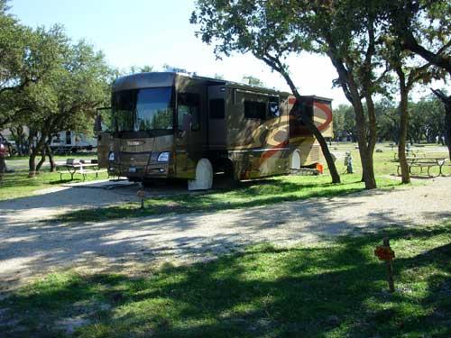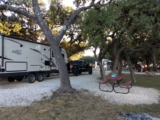 Spent the week at Lake Medina RV Resort, I’d probably give it a 3.5 out of 5 stars. Site 89 (picture) is a great site with a nice patio and lots of trees.