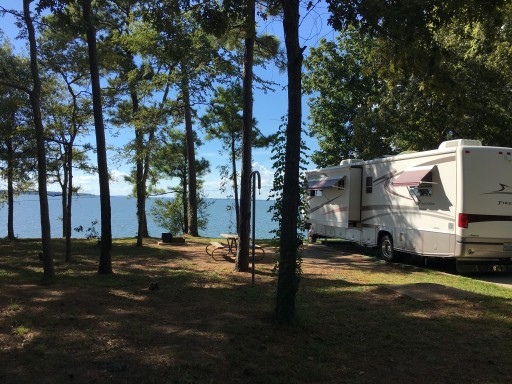 We had sight 54 in Piney Shores, and it has a great view of the lake even though not water front. Pads are level and big concrete. Good shade from the trees, preventing the satellite a southern view. Roads within the park are very well maintained.