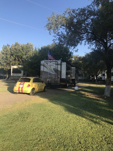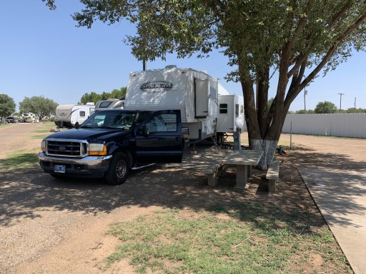 Nice pull thru & back in spots. We got a nice shady spot with concrete pad. If you’re in Lubbock, this is the spot!