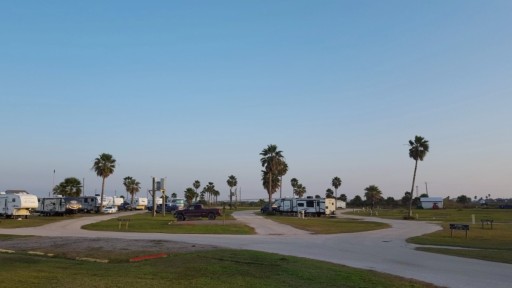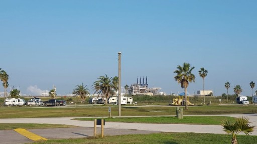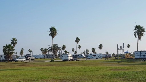 Great beach park. New boardwalks, inexpensive, fishing jetty on one side, fishing pier on the other, Port Freeport boats pass very close by, WWII gun mound with trails, bird watching, friendly staff, no tent camping and all full hook ups for RVs