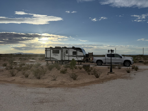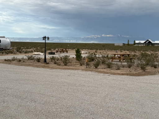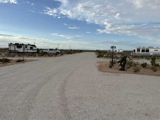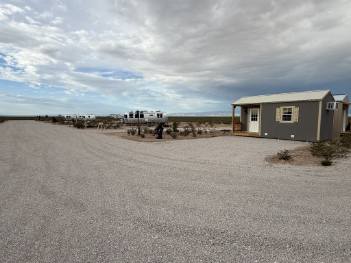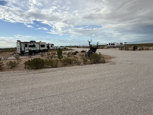 This is a new Rv park a few miles outside of Dell City Tx. 12 gravel spots. All back in, but had plenty of space for our 58’ of MH and car trailer. All sites have nice picnic tables and fire rings. Owner sells firewood onsite. Beautiful views of the mountains. Very remote location so stock up before arriving. Dell City does have two small convenience stores that you can get the basics. Park has a small laundry room. Park does not have showers or bathrooms. If you’re looking for a clean, well run spot in this area, this is a great spot.