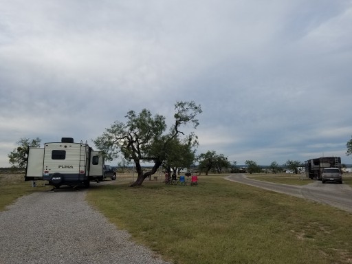 Pull thru with water n 50 amp service, clean bathroom n shower n close to stores/gas makes this a good overnight spot. Katherine the park ranger very polite n helpful. Can't beat the price especially with a Texas Park Pass.