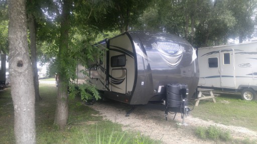 Plenty of room, not sure what the prior reviewer was talking about. Good grassy spots for the dogs, lots of channels on the antenna. Quiet and uneventful, thanks WalMart!
