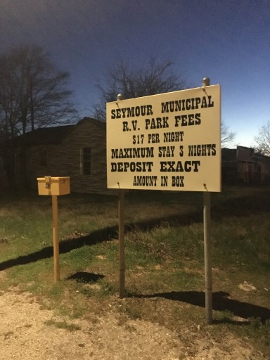So we stumbled across this park as we were looking for a place to possibly boondock in Seymour. It’s not free like some other municipal parks around, but $17 for full hook ups isn’t bad. It’s in town near everything Seymour has to offer and next to the city park. Had a very quiet night and saw both the police department and sheriff’s department patrol the area. Would return if in the area again.
