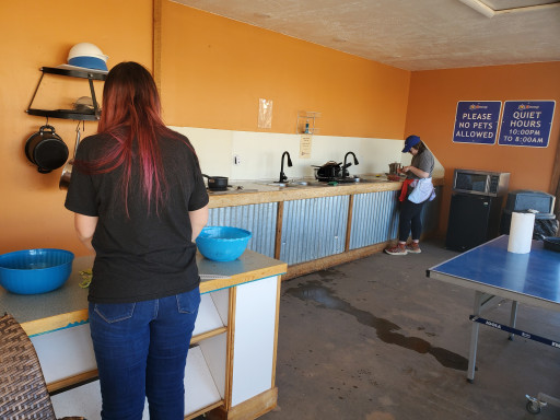 Staff is very friendly. Store is well stocked. We’re in a group with 5 other rigs and are all together in the lower section. Well spaced. 50 amp. Gravel and fairly level. Washers and dryer’s worked great. Ice cream social the other nite. Pancakes and sausage feed every morning from 8-10am.