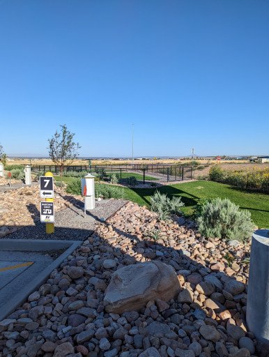 They have eight full hookup RV spots. We backed our 35 ft fifth wheel rite in and kept it hooked up to the long bed truck with no problems. Hookups are nice and easy to use and there is a little dog park and grassy area behind you.