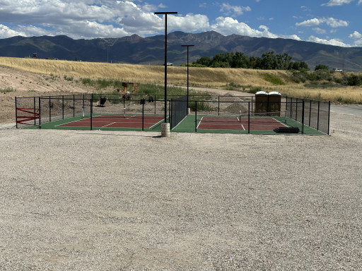 New park. Pool and pickleball courts. Pet area. Full hookup. Wide spaces. Playground. Everything is shiny and fresh. Found it easy to access from interstate. However, if I wasn't running AC, road noise might be an issue.