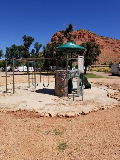 Close to Sand Dunes State Park, Zion, and Bryce National Parks. We stayed two nights, lots of permanents and/or seasonal. I managed to get our 42' coach into a 50 amp pull through at the very back of the property (very tight, with a lot of extra vehicles). Very little grass, all the sites are gravel. The staff was very friendly and helpful.