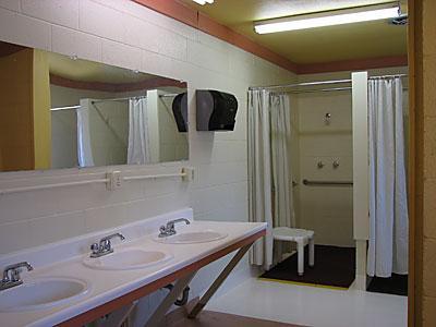 Large weeds and sand in RV spaces. Sites extremely close together. Good price for laundry. Bathrooms are nice, but need to replace shower heads to prevent water spray from drenching shoes and clothes outside the shower. The shower curtain did not prevent this.