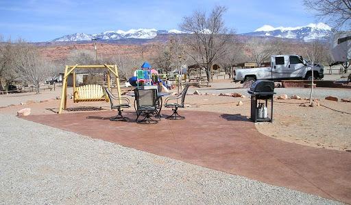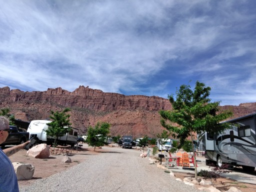 Stayed 2 nights. Expensive but a decent park. Nice pool. Lots of kids. Clean but dusty. Site was a little small for or 32 ft 5th wheel and truck. We have 3 slides. Nice shade trees. Opposite end of Moab than arches park.
