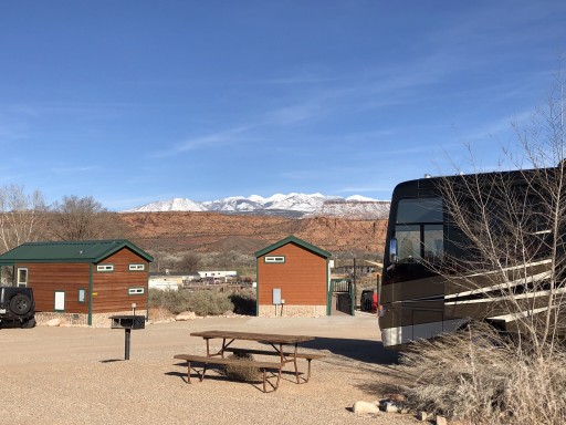 We were fortunate enough to stay in one of the cabins after tent camping in KOA's across the country.It felt like a " deluxe apartment in the sky"! Lots of amenities inside and out. It was very peaceful and quiet and the views are gorgeous,They have a very friendly staff. I highly recommend! A great place to relax after seeing Canyonlands and Arches.