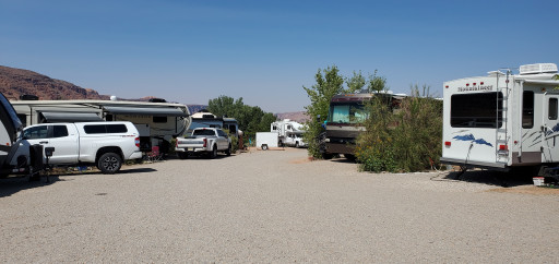 Stayed 4 nights with 30’TT. A little tight but tolerable as this CG has limited # of spots. Nice people running it with plenty of outdoor amenities for cooking & social gathering. Off the main road enough so traffic noise is minimal. Nice views from my spot! Great location for going into town & park visits. Moab is a great visit 4Th time here & always find something different to see. Visit Dead horse State Park!! I gave it 4 stars because of garbage cans were too close to campers & disturbing to those camped right next to them & odorous.