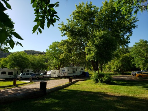 Had to cross a pretty sketchy little bridge that was better narrow. The area is pretty peaceful close to the highway but not enough so you could hear cars. We had some friendly neighbors next to us. The scenery was decent enough. Had full hook ups for 38, spots are pretty tight as well. Good enough for a day stop.