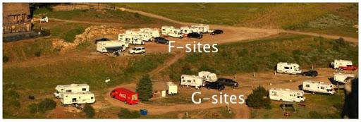 We stayed two nights at lower level. Luckily had a shade tree and close to the stream in our 25ft class C. Access to hiking trail and bike trails to town, about 5 miles. Quiet and relaxing. Fancy class A motorcoaches stay at top lot of park, which is close to highway.