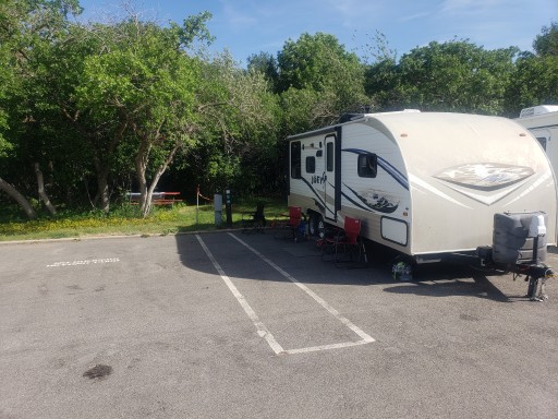pricey for an overnight quick stop. We ended up arriving too late for the amenities and the office wasn’t open. Our spot was listed on the door. Pull thru level paved site. Restrooms had a code which we didn’t have (because we arrived late) but a neighbor kindly provided it to us.