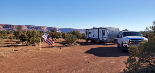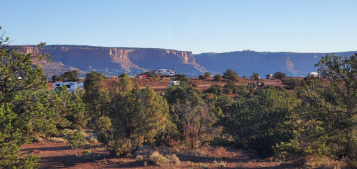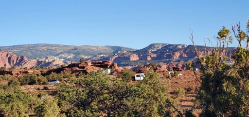 There are almost an unlimited number of sites here. Most have stone fire rings but no other amenities. Some very small shrubs, maybe bristle pines, where you might get a little shade to sit in your lawn chair, but nothing that will shade a tent or RV. Great if you depend on solar to keep your batteries charged. Heard some generators. It would be brutally hot in the summer and muddy in the rain. Pretty clean area for a BLM site. Let's keep it that way. Pack it in, pack it out. If you turn down the road to the right after the cattle guard there is a wash that goes over the road with a pretty significant dip. Large motor homes, 5W's or TT's risk scraping the rear of their rig, so use caution. We have a 30' TT and dragged our rear stablizers a little. Recommend larger rigs stay on E Beas Lewis Rd and don't turn down S Beas Lewis. Scenery on the way in to die for. Very close to Capitol Reef. We would go out of our way to stay again.