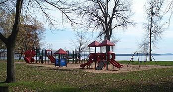This is an RV park that is part of a Burlington City Park. Full hookups, well maintained, trees and grass. Paved roads. Two minute walk to a beautiful beach on Lake Champlain. The beach has a nice concession stand for the usual beach fare (including soft serve ice cream. Right on a wonderful bike trail that runs along the shore, into a forested area, and right into town (an easy 2 mile ride.) We are self contained, so haven't seen the bath house, but all we have seen is well maintained. This is a real gem!