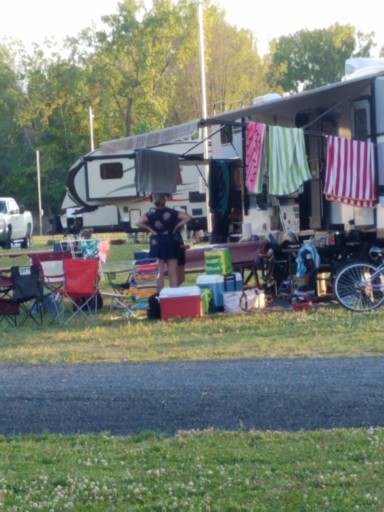 We enjoyed our stay very much. It is pricey, however, if you have Passport America it is 1/2 off. That does not apply to the premium sites that are Lakeview. We were up the hill with the seasonal sites. Sites look all to be level. Everyone including employees are always waving when they go by or stop to make sure we are enjoying ourselves. Nice pool, laundry room 4 washers/dryers $1.25 a wash or dry. Golf course kept nice; a bit expensive but we had a coupon 2 for $30, we did rent a cart for $20. There is a nice hiking trail up to the bluff, what a beautiful view. Nice store, very reasonable. We stayed here from Sunday to Saturday in a 30ft Class A.