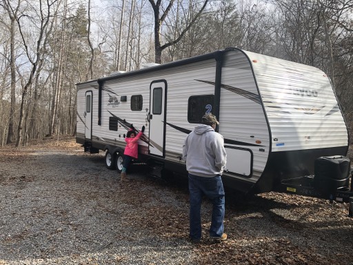 We love camp karma! The sites are in the woods. Spaced out great! Not right on top of each other. Clean restrooms and a store if you forget anything. Each spot in the blue section has electric. We have an RV and stayed in blue5. We hung up our girls hammocks, cooked out over the campfire and RELAXED! The owner to friendly and accommodating. She even let us stay in her off season. There is a pond, basketball net, playground, river front beach, and space for days! It’s even super close to blue ridge mountains. And if you need to run to a store, you are close to Moneta or Bedford. We can’t wait to come back!!