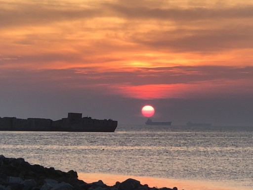 The water area is interesting, with large ships sunk to act as breakers. A lot of nesting birds use the decks of those ships to nest.