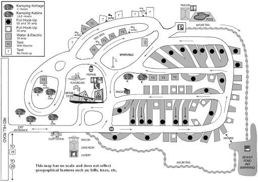 We spent a night here on our way home. A little pricey can maneuver bigger rigs around but need to be very mindful of trees and other camper. Very personable staff well kept definitely off the beating path from the interstate. The play area is more age appropriate for little children. Have a fenced in area for pets to get out and stretch there legs. Pool is nice with very clean bath rooms. I give this a 3 because of the trek it takes to get to it from the interstate and the tightness of the drive lanes for the bigger rigs.
