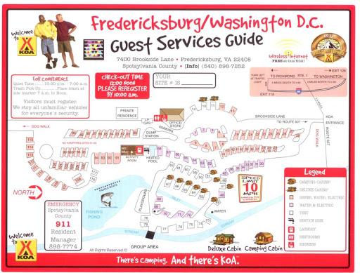 Far enough from the Interstate to be quiet, close enough to be good for an overnight or a longer stay. If you are interested in touring historic sites, you are an easy drive from three significant National Historic Parks. Friendly very knowledgeable staff well versed in the history of the area. Nice sites, good wifi and cable. Fishing pond on site, adequate off-leash dog park, good on-leash hiking trails. Nice store. While we were there we had a major rainstorm that resulted in some of the tent and water/electric only sites near the creek being totally flooded. Obviously not the park's fault but worth knowing. Small laundry. Trash pickup at your site, which is convenient. Handy to shopping and historic sites. A nice quiet rural setting to relax in after a day of touring.