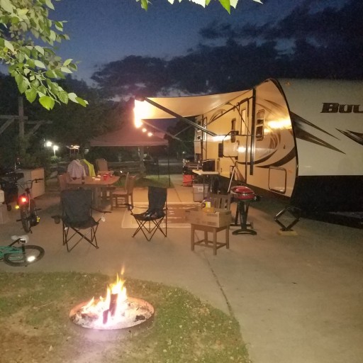 If you’re looking for the finest campground with all the fixings, this is the place for you. Gravel sites, concrete sites, sites with lake view, sites with hot tubs. Concrete sites have all the outdoor furniture, fire ring and gas grilles. Very clean and well maintained.
