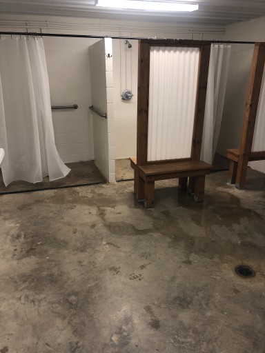 The bath house is heated and centralized but a hall from the furthest RV site and primitive campsites.