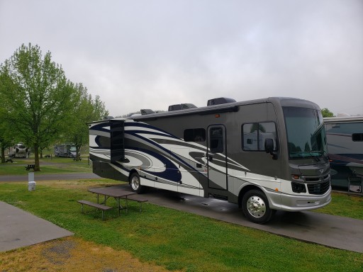 Spent one night here the end of October 2019 on our trip back to Florida. We had a concrete pad on which to park but it was a tad too narrow for our Class A as when the steps were extended you stepped off onto the grass which was a couple of inches down from being even with the pad, it was uncomfortable for me due to health reasons. I had no staff interaction but understand that they we friendly and helpful. The cable was nothing short of awful (snowy) and the wi-fi was non existent which is why this review is late. Next trip we'll try another park for comparison. Price was reasonable 37$ Lots of pull thurs if you need one.