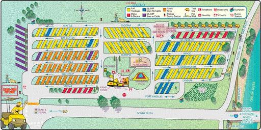 We have stayed here as it's the only place within miles for family functions. Our experience its the worst koa running. Sites are small and narrow. Limited off site parking. Some of the grounds look like the Seattle homeless. Broken down rigs, take a walk and see the expired tags. Limited to one wifi electronic. Limited cable, and I mean really limited. The sites are so narrow if your awning is out you will come within 6" of your neighbor. No fires from the king county fire ban.