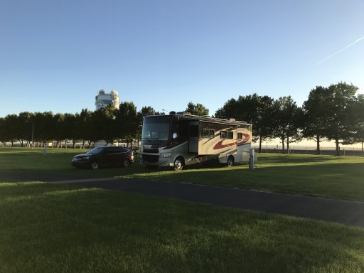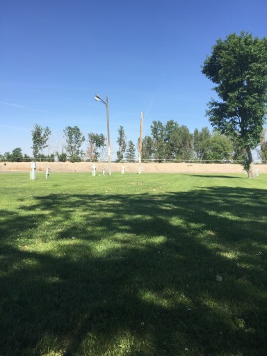 We stayed at the rodeo grounds camping. Electric and water but no sewer hookups. There is a dump on site but not sure where. The big grass area for camping is nicely kept and has some decent shade trees. Very reasonably priced! Great proximity to town and all fair events. First come first serve = arrive early.