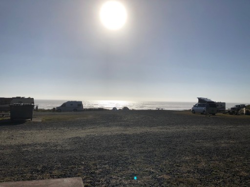Beautiful spot with beautiful Pacific ocean views, nice beach, no electric, tables and fire pits/bbq at each of the 56 sites.