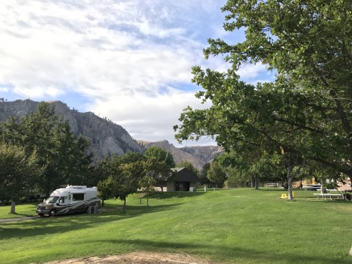 We stayed one night at this beautiful park right next to the river. Water and electricity pull through $35. A few premium sites are on the river for $40. There is a dump station but we didn’t use it. We really enjoyed this place except for the huge power transformers that are next to you and above you.