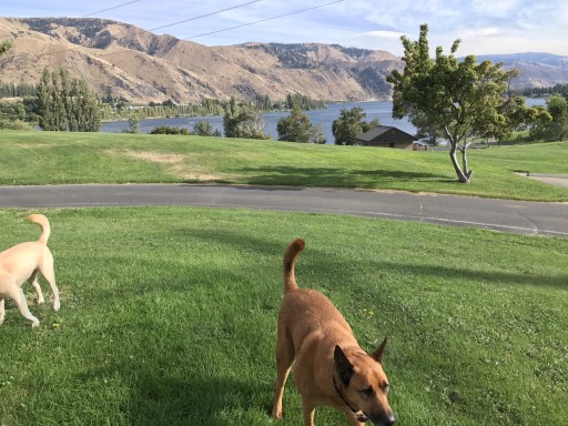Very large sights. Lots of large grassy areas for kids and dogs to run. Good views of the river and the surrounding country side.