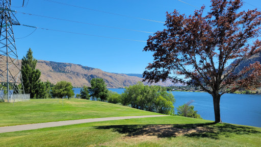 We were in site 25 with a great river view. It is so peaceful here. Yes, there are high tension power lines but for us that doesn't detract from the beautiful park. It's clean, mowed, great restroom/shower facilities. There's a boat launch, swimming area, playground, walking/biking paths. Bring your kayaks and SUP. Big rig friendly with E/W and a dump station, no sewer hookups. When it's windy the wires sing to you. We would definitely recommend this park!