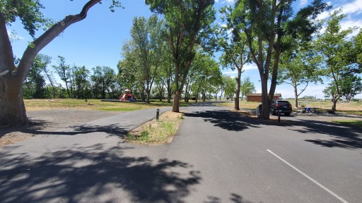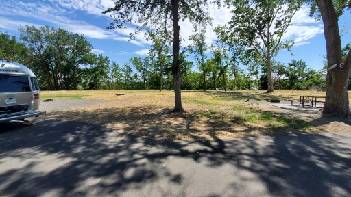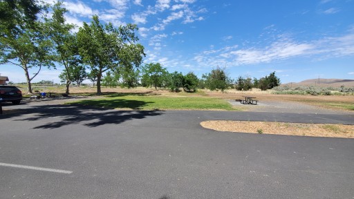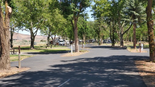 This is a beautiful park on the river. Roads are paved and wide. We had no problem navigating with our 40’ motor home. Sites are large and grassy with a paved landing spot. There is also a paved patio with a picnic table and fire pit. Grounds were neat and tidy. Camp hosts were friendly and helpful. Quiet setting. We had water and 50 amp elec, but no sewer hookup. It seems about half of the sites have sewer hookups, so check when booking. We used the dump station on the way out. We loved this spot and will definitely return.