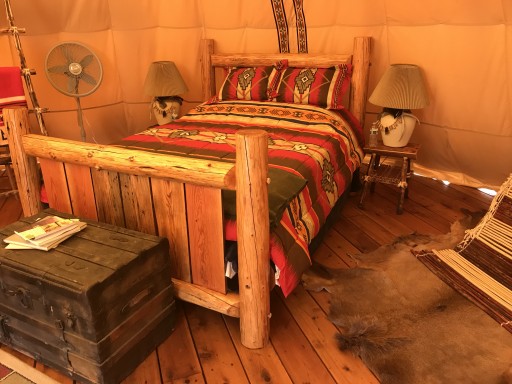 All of our Sites are pull-thus and are over 130' in length. Oh, and of course I should mention that we now offer a super nice 26' Tipi with a queen bed for rent.