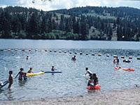 The park hosts are wonderful they have ice and firewood for sale. The campsite was full for 4th of July weekend but we never felt like it was crowded or loud. The swimming area is clean there is no beach with sand but it's shallow enough for little ones to splash around. The showers are coin operated.