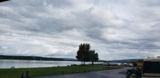 Rolled off the freeway looking for a place to settle in for the night. This is a nice clean park alongside I-5. Spaces are narrow in the center of the park, if we had 2 more inches we could have our slide all the way out. Since it's not going to be raining tonight, we decided to go with it. If we stop here again we'll ask for a back in spot on the perimeter of the park.
