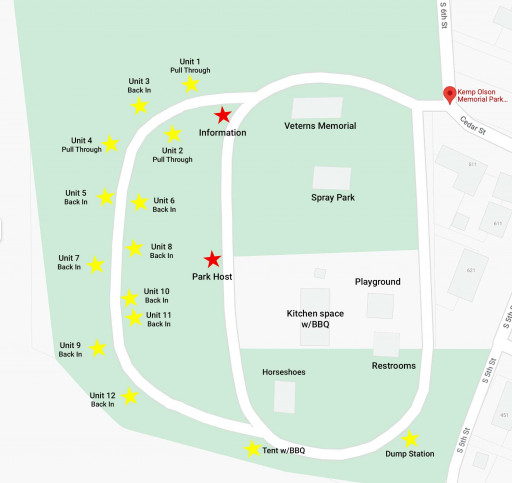 Within Toledo's city limits is the Kemp Olson Memorial Park. It offers a covered kitchen area, BBQ pit, restrooms with shower facilities, kids playground, water-spray park, 12 RV camping sites with water and electricity hook-ups, tent camping and Veteran’s Memorial Wall.