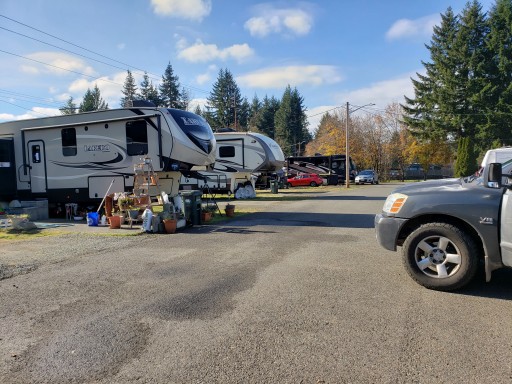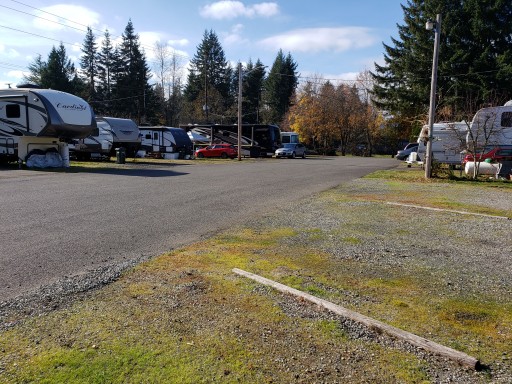 Picked this place because of the reviews and photos for a week near Olympia. This is a strange one. The photos I saw were misleading so I took some of my own. Probably one of the worst RV spots I've had in our 6+ months of full timing. I attribute none of this to the management, who were friendly and helpful, although they wouldn't take card so we had to make an atm run. I've been in some tight spots but this has been the tightest. Very, very tight. One road in and out to our spot right on the road intersection. Had to step over neighbors sewage line just to get out of the truck. Also, the road is constantly very noisy from early morning to after dark. Location is decent enough being close to plenty of shopping and food options. Most spots are long term residents with very few part time spots nestled among the permanent rigs.